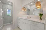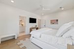 - Bedroom 4: King bed, private balcony with Gulf and Lake Views, en-suite bathroom with glass shower