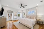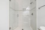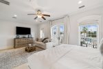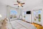 - Bedroom 3: King bed, 2 balcony accesses, en-suite bathroom with glass shower