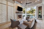 Finally, make your way up to the fourth floor, where you’ll find a rooftop lookout tower that will take your breath away! This partially covered space includes a built-in mini bar, TV, dining area, and endless Gulf views!