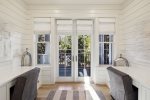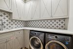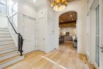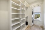 Upstairs on the second floor, there is a second living room, complete with a wet bar and a balcony overlooking the backyard. Also on this floor is the laundry room, as well as three additional bedrooms. The stunning master suite features a King bed, built-in fireplace, two charming window benches, private balcony, walk-in closet, and a luxurious en-suite bathroom with dual vanities, a large glass shower with dual showerheads, a separate soaking tub, and its own private washer/dryer for added convenience!
