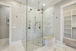 - Bedroom 7: Three Twin beds + one Full bed, en-suite bathroom with dual vanities, glass shower