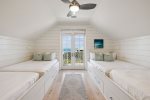- Bedroom 6: Four built-in Full beds, private balcony with Gulf Views, shared hallway bathroom with dual vanities, glass shower