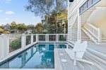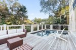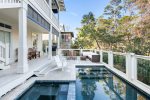 Heading out back, you'll find your own outdoor oasis complete with a private pool, spa, plenty of comfortable lounge seating, and a shaded BBQ grill area perfect for cookouts. There is also an outdoor shower for rinsing off after a day at the beach!