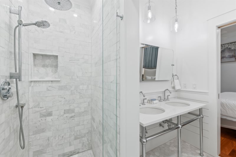 - Bedroom 3: Queen bed, shared bathroom with glass shower